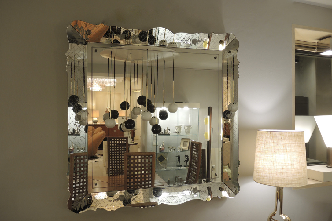 Gio Ponti per Fontana Arte..  lo specchio ha il suo supporto in legno che segue l ‘andamento dei vetri.. grandi dimensioni 120 cm x 120 cm
