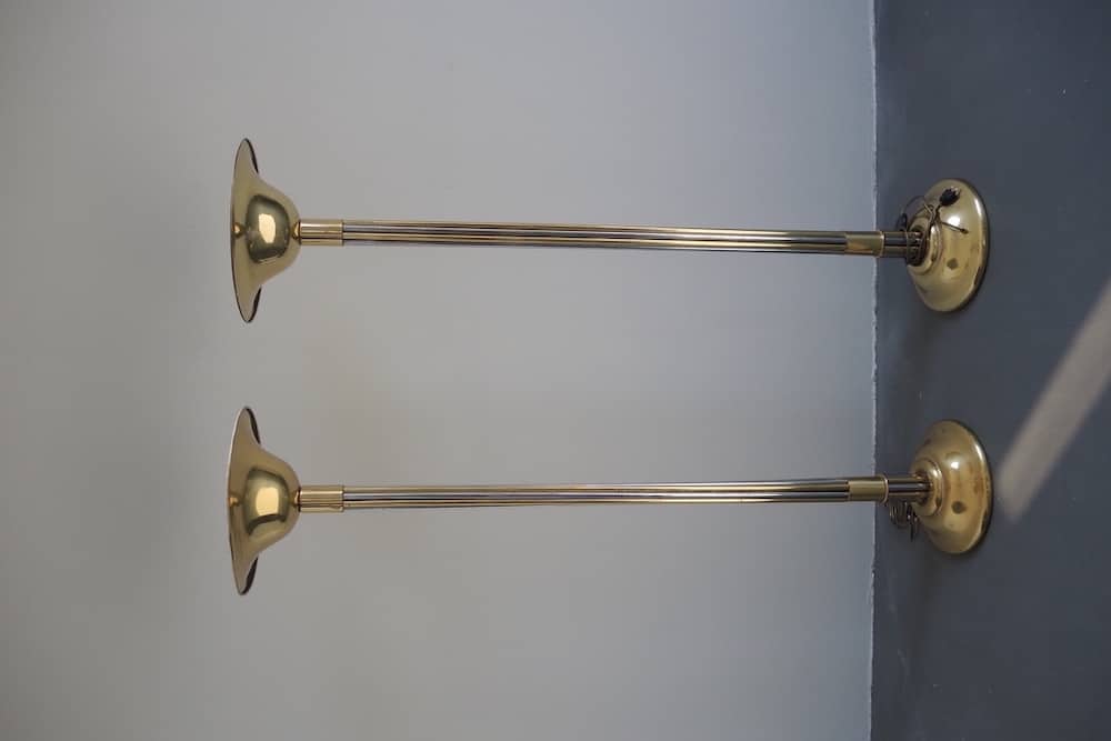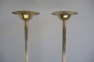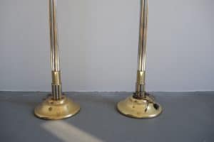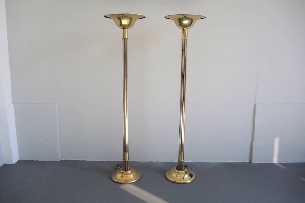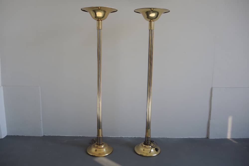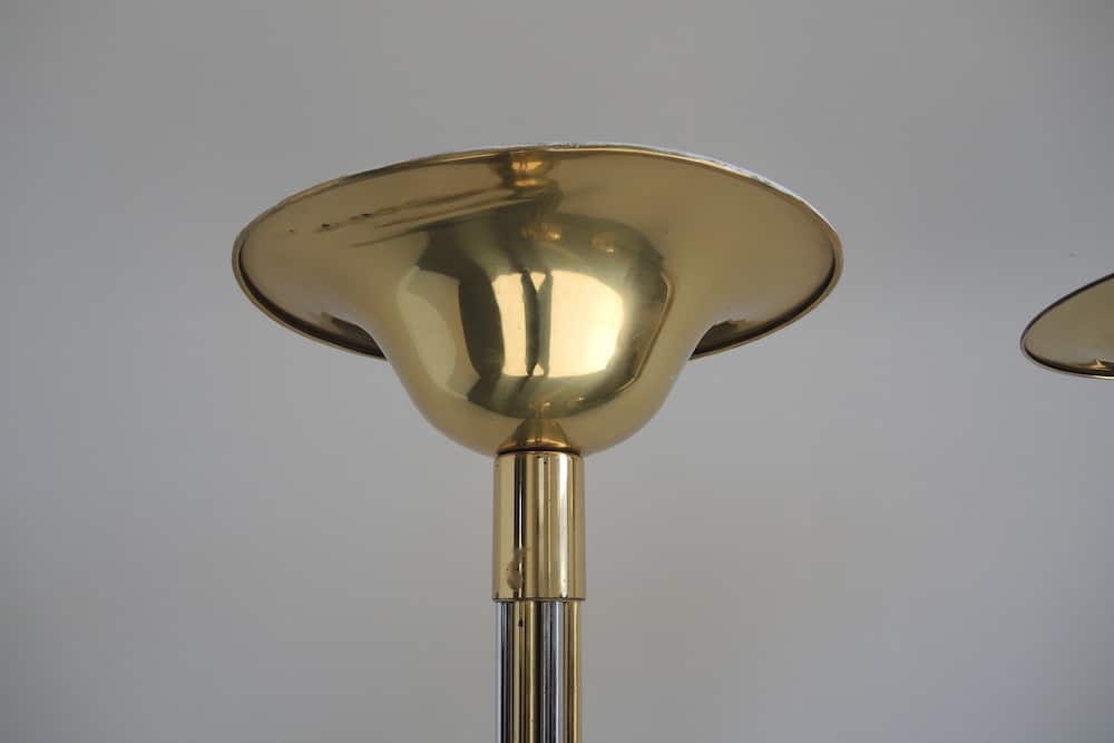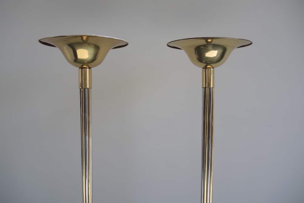 Coppia di lampade da terra in  ottone e acciaio realizzate dalla Ditta Reggiani durante gli anni 80.