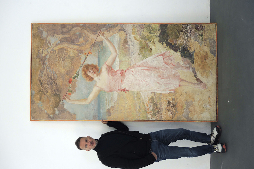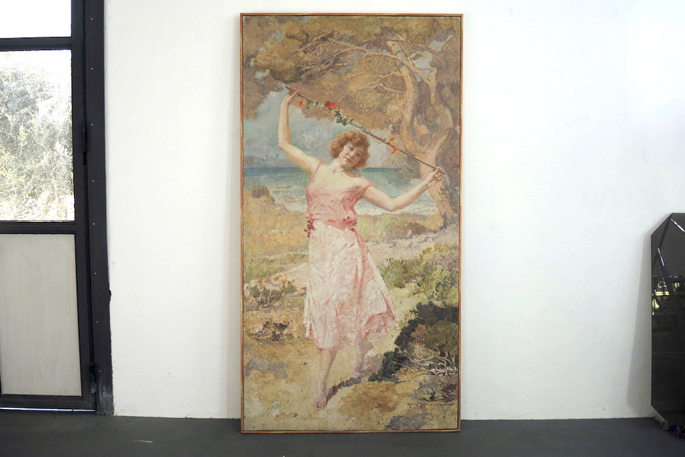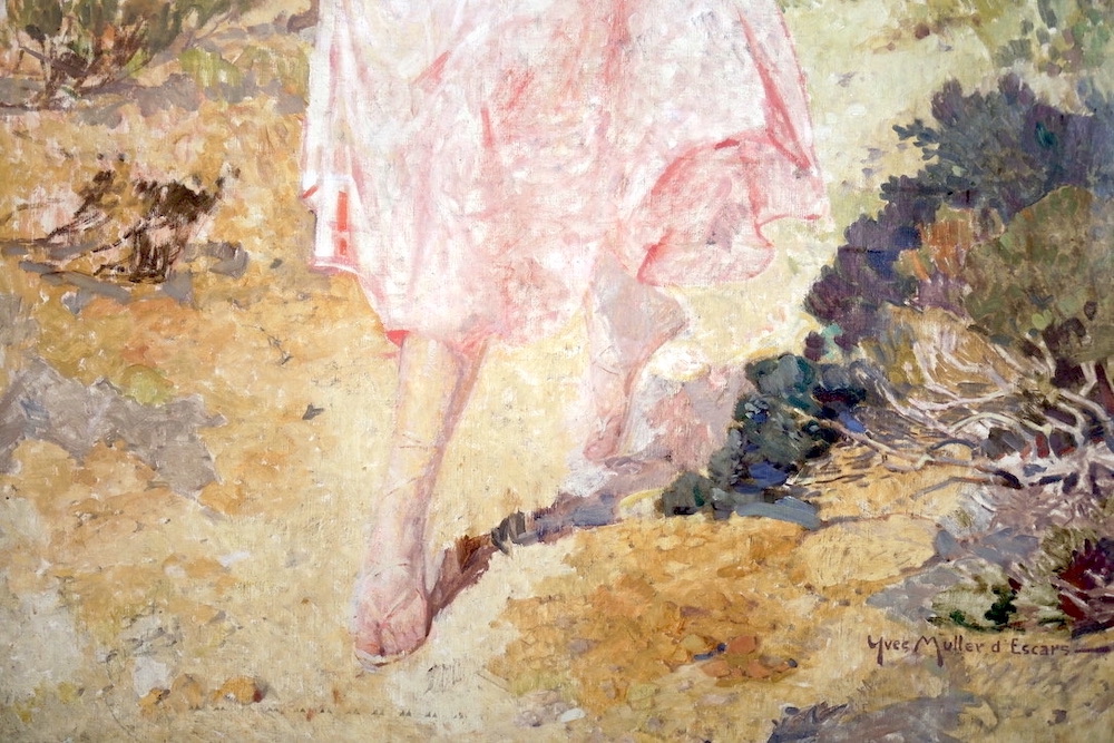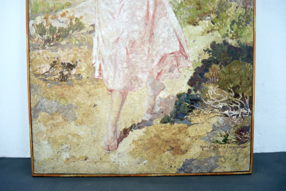 Grande olio su tela (250 cm di altezza per 130 cm) realizzato durante i primi anni del 900 dal pittore francese Yves Muller d’Escars (1876 -1958). Macchiaiolo, ha studiato con Constant e Robert Fleury ed esposto ai saloni francesi e nel 1903 vince il Grand Prix de Rome.